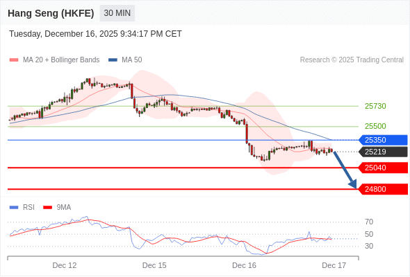 - 下一篇: 恒生指数 当日内: 短期关键阻力位在25300。