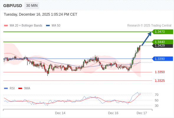 在 1.3390 之上,看涨,目标价位为 1.3440 ,然后为 1.3470 。